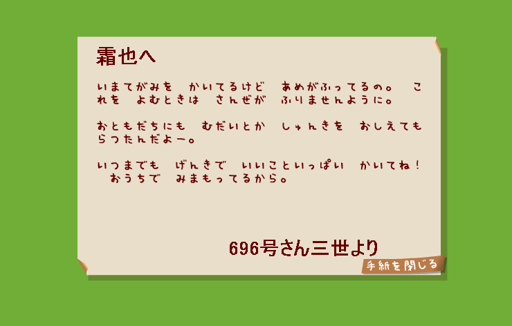 お手紙を持ってきてくれた三世。